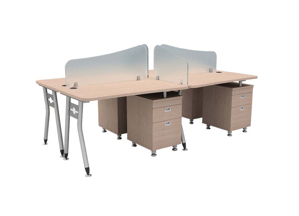 Modul 4 chỗ, mặt bàn chữ nhật chân sắt, vách ngăn kính.