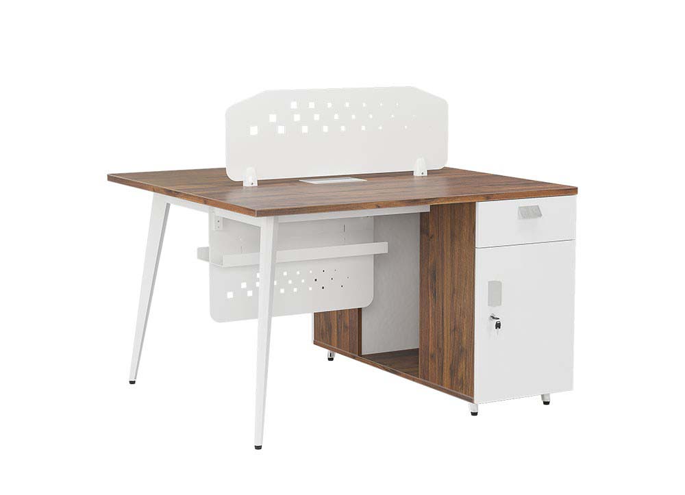 Modul làm việc 2 chỗ chân C10, mặt bàn gỗ melamine cao cấp có vách tôn sơn trắng.